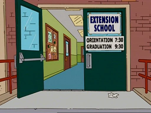 Springfield Extension School is where Homer Simpson went to figure out how to satisfy Marge. His lecture eventually lead him into becoming the boss at the Springfield Nuclear Power Plant.