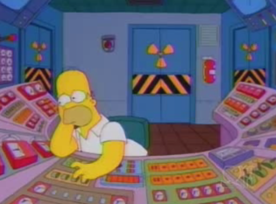 The core of the reactor is a Fissionator 1952 Slow-Fission Reactor. The plant has come close to meltdowns multiple times, but has always avoided catastrophe, often due to Homer's blind luck (and in one case, a dog employee briefly waking up to avert the meltdown during a particularly lazy day). On a similar note, it was implied that the plant has suffered enough minor meltdowns as a result of Homer's actions that mop-up crews dispatched to decontaminate a meltdown knew him by name.[4] Once, the reactor caught fire and caused significant damage to the power plant due to Homer dumping a donut into the reactor with the intention of increasing the donut's size, which alongside Homer's attempts at falsely claiming he was a new worker resulted in his firing.[5]