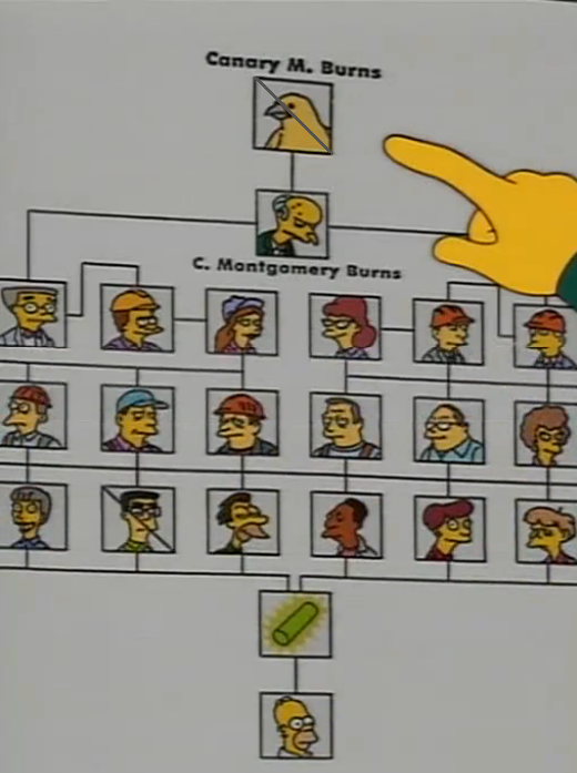 - For some reason, Homer is placed at the bottom of the power plant's hierarchy and even lower than a nuclear rod. This may be due to his laziness, incompetence, and recklessness as it was seen when he throw a donut in the nuclear plant's chamber to see if it can grow in size.