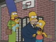 - In Homer vs. Lisa and the 8th Commandment, Homer furiously strangles Bart when he tries to go inside.