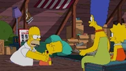- In "Treehouse of Horror XXVIII," when Homer enters the Other Simpson family's world, the Other Marge Simpson asks Homer if he would like two eyes, so they can talk to each other while he watches TV. But before Homer could answer, the Other Bart Simpson says, "Just what Homer needs; an excuse to get lazier.", to which Homer furiously shouts, "Why you little!", and angrily strangles the Other Bart while shouting, "I'll lazy you! You otherworldly-!", but he accidentally decapitates the Other Bart.