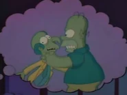 - In "Love Is a Many-Splintered Thing," when Homer says "I'm so much older and wiser", Bart foolishly insults him cruelly by saying "More like balder and wider", to which Homer angrily shouts "Why you little! I'll teach you to say something that sounds similar!" and strangles Bart violently as a terrified Milhouse watches them through his glasses.