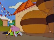 - In "Clown in the Dumps," when Krusty asks Bart if talking to his dad makes him feel better, Bart says "Well, no, but he's not a rabbi. More of a flabbi." to which Homer furiously shouts "Why you little! I'll show you who's a flabbi!", but instead of strangling Bart he angrily rolls his face on his stomach.