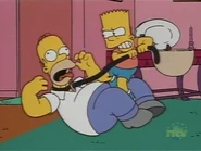 - In "The Bart Simpson Show", Homer angrily strangles Bart for breaking the TV and Bart strangles him back.