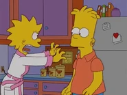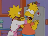 - In Lisa on Ice, Bart furiously confronts Lisa in her room and they end up getting into a fight; when Marge comes to break it up Lisa and Bart angrily are punching and strangling each other while rolling around on the floor.
