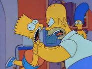 - In There's No Disgrace Like Home, Homer furiously says "You listen to me!" and angrily strangles Bart.