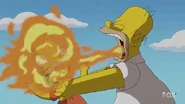 - In "Father Knows Worst," when Bart tricks Homer into drinking lighter fluid, instead of water, Homer realizes what Bart did, so he starts breathing fire as he furiously shouts, "WHY...YOU...LITTLE!". As he angrily strangles Bart, he angrily shouts, "BURN, BARTY, BURN!", breathing fire at Bart's head.