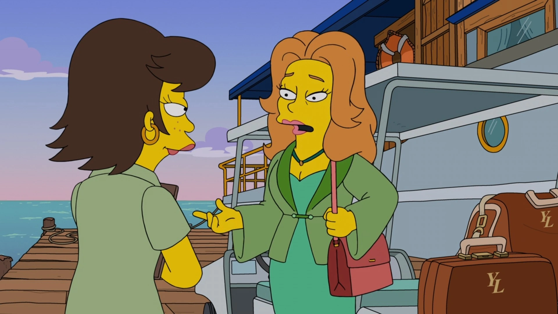 At the poolside, Tasha noticed that Marge was reading the book "My Name Is Barbra" by Barbra Streisand and mentioned to Marge that she owned the audiobook version after she deleted her photos to make room for her phone storage. Marge subsequent proceeds to listen to the audiobook with her. Later, Tasha participated in a fortune-telling session with Mamma Risotto, who predicted that someone would meet their death at the resort. Upon learning of this, Homer and Marge warned Tasha that Sideshow Bob might attempt to steal her money. However, she informed them that she had a solid prenuptial agreement in place and only get her money in the event of her death. Sideshow Bob, upon overhearing their conversation with Tasha, the Simpsons end up getting chased by Lindsey Naegle and the security guards.