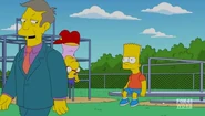A baseball hits Bart in the head.