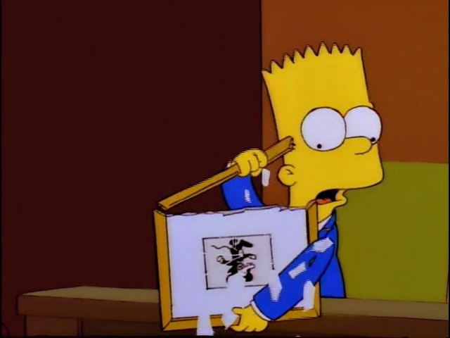 With the help of Lionel Hutz, Bart unwittingly bankrupts the studio that produces Itchy & Scratchy when he and Hutz successfully prove the idea for Itchy was stolen some 70–80 years earlier.