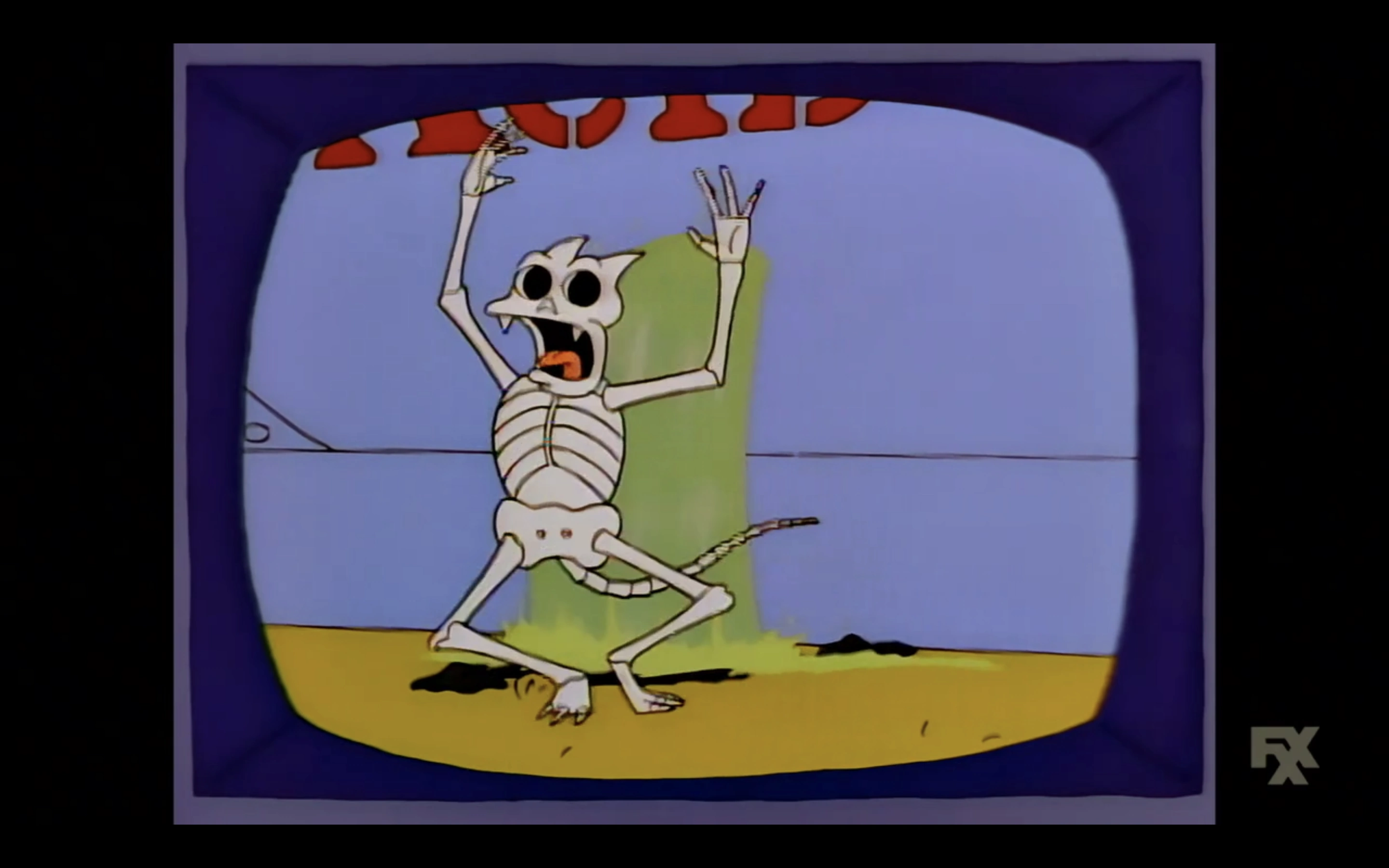 For a frame in the final Itchy & Scratchy cartoon of the episode, Scratchy's skeleton is missing its spine.