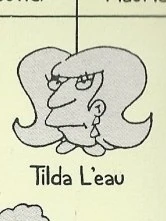 Tilda L'eau was the only daughter of Maurice L'eau and Coquette Bouvier. She had three brothers Theodore L'eau, Hi L'eau and Rodney L'eau.