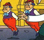 Tweedledum and Tweedledee are identical twins from Alice in Wonderland.
