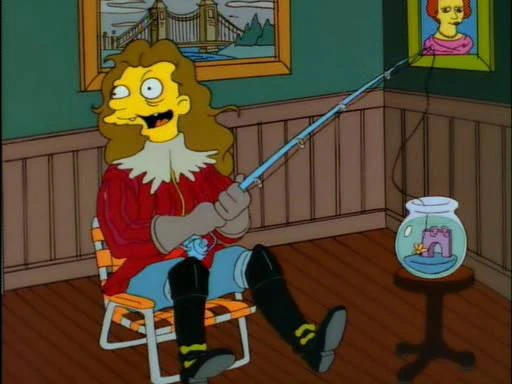 Lisa believes he is of importance of a royal family, but he turns out to be a mentally ill man. His line is "I get me brain medicine from the national health".
