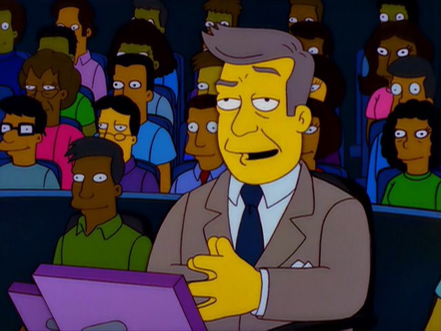 The character is a parody of Regis Philbin who at the time was hosting Who Wants to be a Millionaire.