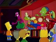 Bart had a birthday party there. Wal E. Weasel also appears in the restaurant as a costumed mascot. At Bart's birthday party, he was seen serving pizzas to partygoers and coming to the rescue with a fire extinguisher when Signor Beaverotti caught on fire.