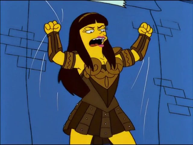 - Springfield Elementary School gym teacher Brunella Pommelhorst mentions swearing oaths by Xena.